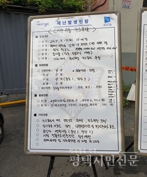 [평택시민신문] 9월 17일 3시 20분경 비전동에 소재한 외기노조 C지구 아파트 A동에서 가스폭발사고가 발생했다.