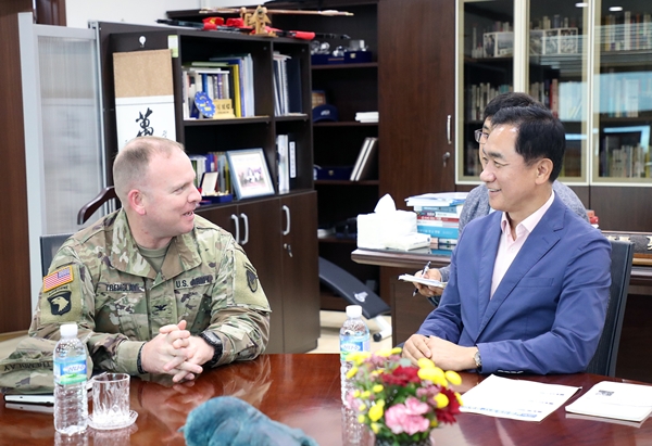 정 시장은 “취임 후 첫 평택시청 방문을 환영한다”며 “주한미군 평택시대에 시민과 주한미군의 유대강화를 위해 부대 관리를 담당하는 험프리스 수비대(USAG humphreys)와 시의 긴밀한 협력이 더욱 중요해지고 있다”고 인사를 전했다.