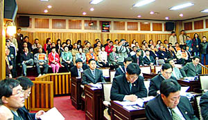시의회는 3월 31일 미군기지이전 전담기구 관련 정원개정 조례안과 행정기구 설치 개정조례안을 해당 상임위인 내무위원회(위원장 최종석)에서 심의했으나 결론을 내리지 못하고 4월 1일 본회의에서 토론, 의결키로 결정한 후 시의회 의장(이익재)이 이를 직권으로 본회의에 상정해 표결로 통과시켰다.