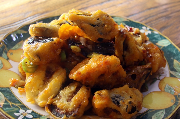 성용 씨에게 비결을 물어보니 보통 깐풍가지는 전분을 넣고 튀기지만 그의 깐풍가지에는 밀가루도 함께 들어간다고 답했다. 전분이 바삭하고 단단하다면 밀가루는 부드러운 튀김옷을 만들어 낸다. 두 재료가 성용 씨만의 배합법을 거치고 나면 겉은 바삭하고 속은 부드러운 깐풍가지가 탄생한다. 독특한 맛을 자랑하는 깐풍가지. 꼭 한 번 칼국수와 함께 먹어볼 것을 추천한다.