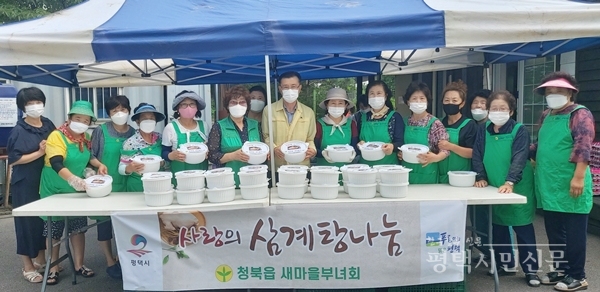 [평택시민신문] 청북읍 새마을부녀회(회장 백유순)는 초복인 16일 관내 홀몸어르신에게 정성껏 끓인 삼계탕을 전달하고 안부 인사를 전했다.