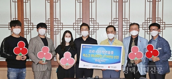 [평택시민신문] 트래이디는 최근 평택시청 대외협력실에서 코로나19 예방을 위해 마스크 9만9000장을 평택시에 전달했다.