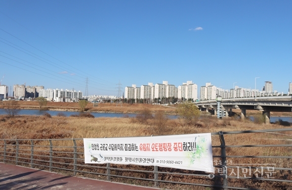 박환우 평택환경행동 공동대표는 “평택시 산림 녹지비율은 17%로 매우 부족하고, 행복지수는 최하위 수준”이라며 “억새군락과 버드나무 숲을 밀어버리고 오토캠핑장 등 유원지를 조성하려는 것은 말로만 환경우선 행정, 환경시장을 내세우고 있음을 방증한다”고 질타했다.