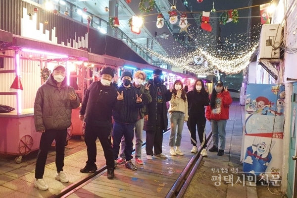 [평택시민신문] 평택시 신장동에 있는 미군 철로변을 가면 크리스마스 분위기가 물씬 풍긴다. 밤이 되면 반짝반짝 전구가 빛나고, 양 옆에 붉게 드리운 붉은 휘장 뒤에는 산타클로스가 짠 하고 나타나지 않을까 설렌다. 이곳을 이렇게 꾸민 이들은 바로 송탄중앙시장상인회에서 활동하는 20~30대 청년상인들이다.