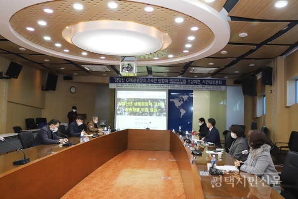 평택에코뮤지엄연구회는 18일 ‘강당산 CPX훈련장의 조속한 반환과 에코뮤지엄 조성을 위한 시민토론회’를 팽성국제교류센터 국제회의실에서 열었다.