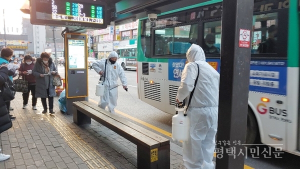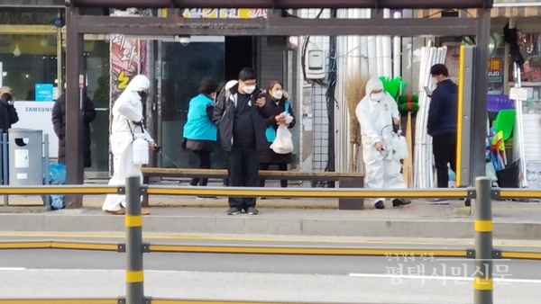 [평택시민신문] 평택시재향군인회는 16일 시민이 자주 이용하는 평택역, 평택 터미널, 버스승강장, 상가 등에서 집중 방역을 전개했다. 이날 재향군인회 이사, 향군여성회 회원, 사무국 직원 등이 참여했으며 시민에게 핫팩·마스크 등을 나눠주고 코로나19 예방수칙도 홍보했다.