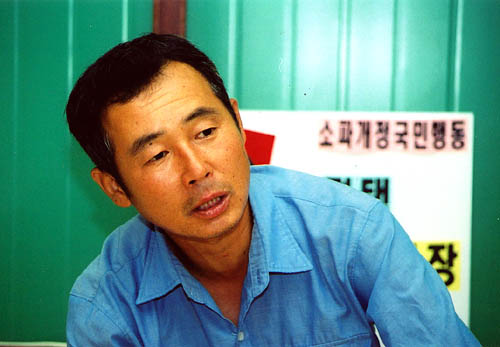 팽성대책위가 출범한지 1년이 조금 넘은 8월 15일(광복절)저녁, 대추리 황새울 영농단지 옆 망루에서 김지태 위원장을 만났다.