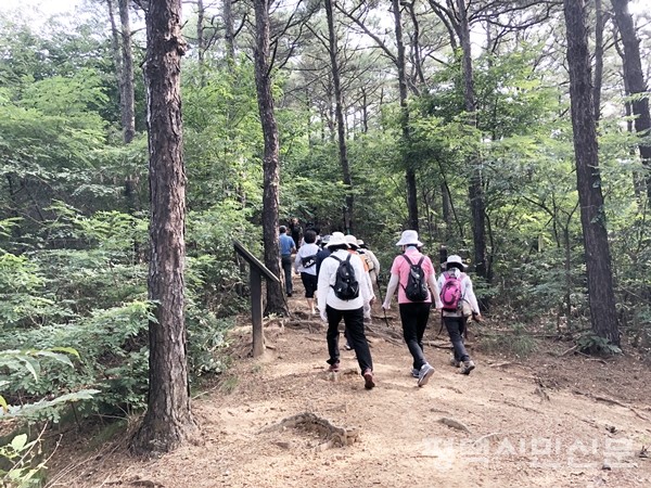 우리 사회에서 일어나선 안 될 끔찍한 일 가운데 방화와 실화를 들 수 있다. 2/3 이상이 산지인 국토를 불태우면 우리네 삶도 더불어 무너지기 때문이다. 따라서 그린벨트로 묶은 지역은 함부로 풀어선 곤란하다. 사유지라면 적법절차에 따라 공유지를 늘리는 게 미래지향적이라고 본다. 잠시 멈춰 이런저런 생각을 나누다 급히 걸음을 떼니 금세 숨이 턱까지 차올랐다. 이마에 두른 손수건에서 땀방울이 물방울이 돼 뚝뚝 떨어진다. 천신만고 끝에 오른 무봉산 정상. 해발 208m밖에 안 되는 봉우리라고는 믿기지 않을 만큼 가팔랐다.