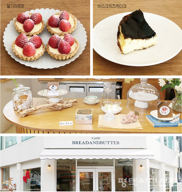 1월 18일 사람들이 거리로 나왔다. 카페 내에서 커피를 마시는 것이 허용되면서다. 식사를 마치고 커피와 달콤한 디저트를 즐기고 휴대전화 화면 대신 얼굴을 마주보고 대화를 나누는 시간. 때론 인생에 남을 사진을 남기기도 하는 일상으로의 복귀다. 다시금 돌아온 일상을 만끽하고 싶다면 시내에 자리 잡은 카페 ‘브래드앤버터’를 추천한다. 삼성생명 뒤편 골목에 자리 잡은 브래드앤버터가 문을 연 지는 6개월여밖에 되지 않았지만 이미 사람들 사이에선 디저트가 맛있는 곳, 인테리어가 예뻐 사진찍기 좋은 곳으로 입소문이 났다.