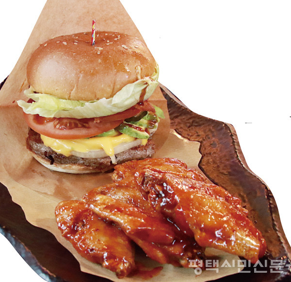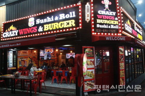 팽성읍 캠프 험프리즈 앞 안정리쇼핑몰 거리에 위치한 ‘크레이지 윙즈&버거’에서는 한국인을 찾기 어렵다. 매장에서 식사를 하거나 포장을 하려는 미국인들로 계산대는 쉴 틈이 없다. 이곳 인기 비결은 바로 ‘미국 정통의 맛’을 그대로 재현한 데 있다.