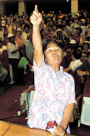 미군기지이전 특별법 공청회가 주민들의 저지로 아수라장이 되면서 무산됐다. 대신 이날 공청회는 수용예정지역 주민들의 억울함을 성토하는 장으로 바뀌었다. 주민들은 “배 곯아가며 염분에 찌든 농지를 가까스로 일궜는데 지금에 와서 수용 하겠다는데 절대 들어줄 수 없다”며 울분을 터뜨렸다.