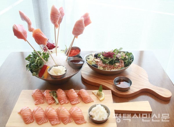 코로나19가 계속되면서 건강이 최고라는 사람이 늘고 있다. 면역력을 증진시키는 효능이 있으면서 일상에 활력을 불어넣을 정도로 맛있는 음식으로 뭐가 있을까. 이에 부합하는 먹거리가 여럿 있겠지만 연어 정도면 첫손가락에 꼽을 만하다. 세계10대 슈퍼푸드 중 유일한 생선으로 오메가3, 비타민D, DHA 등이 풍부하게 함유돼 있고 맛도 좋다. 노르웨이에서 갓 잡은 연어를 비행기로 실어와 신선함까지 살아 있다면 더할 나위가 없다. 팽성대교 근처에 지난해 5월 1일 문은 연 ‘연어로만’에서는 더할 나위 없이 맛있는 연어를 다양한 요리로 즐길 수 있다.
