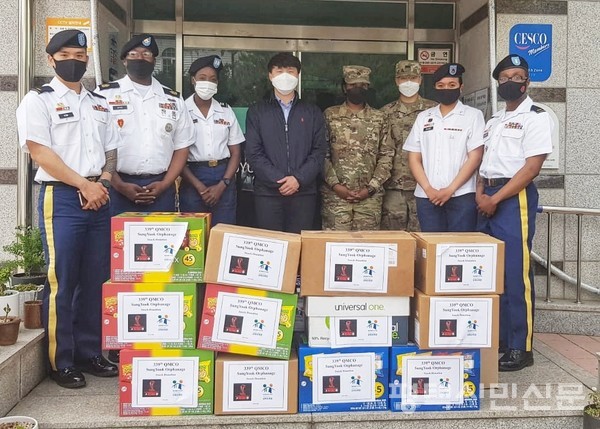주한 미육군 339 병참 중대가 5월 7일 성육보육원에서 원생들을 위한 간식을 전달했다.