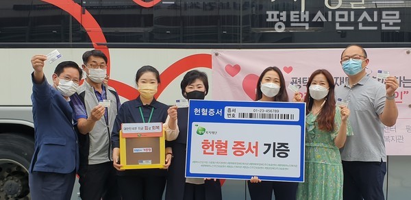 평택복지재단 임직원은 6월 3일 임직원이 팽성복지타운과 송탄출장소에서 코로나19 장기화로 부족해진 혈액 수급을 위해 헌혈에 동참했다.
