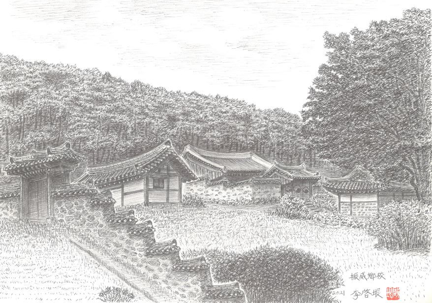 진위향교는 무봉산 기슭의 짙푸른 송림 아래 남향으로 자리 잡았고 그 앞엔 유유히 강물이 흐른다. 평택시의 비상 식수원인 국가하천 진위천이다. 유가(儒家)의 성현들을 모신 제례 공간인 대성전은 경기도문화재자료 제40호다. 아래는 강학 공간인 명륜당.
