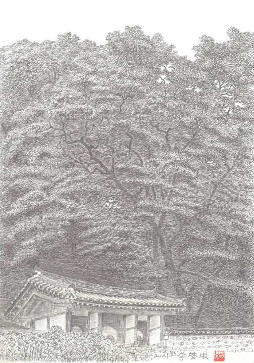 외삼문 후면엔 30m 높이의 250년 이상된 회화나무와 느티나무 군락이 있다. 회화나무는 그 가지의 뻗음이 자유로워 학자와 선비의 기개를 상징한다. 향교나 서원, 걸출한 선비의 집 주변에 회화나무를 심었던 이유다.