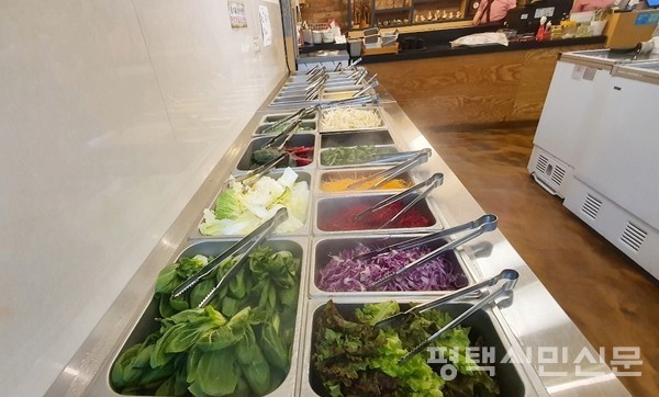 채소가 부족하면 무한리필 샐러드바를 이용하면 된다. 샐러드바에서는 채소뿐 아니라 다양한 먹거리가 제공된다. 샤브샤브 국물에 넣을 수 있는 만두·어묵·떡 등이 먼저 눈에 띈다. 채소와 고기를 건져먹은 다음 육수를 이용해 쌀국수나 계란밥을 만들 재료도 갖춰져 있다.