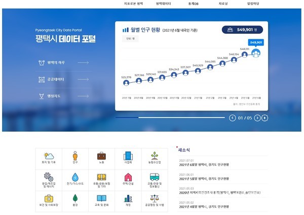 평택시는 7월 20일 시 통계·공공데이터를 쉽고 편리하게 찾아 활용할 수 있는 ‘평택시 데이터 포털’(www.pyeongtaek.go.kr/data) 운영을 시작했다.