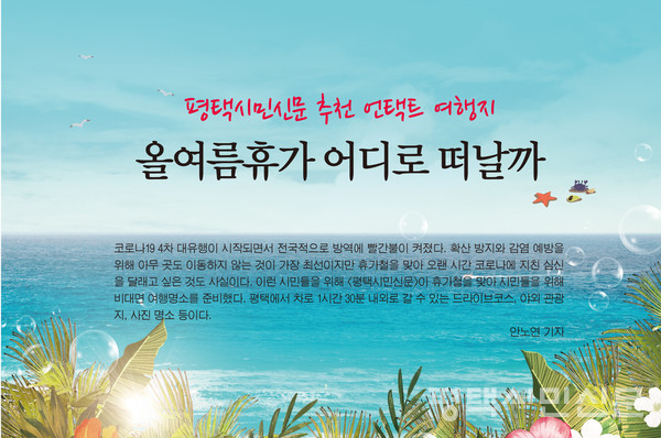 무더운 여름 제일 먼저 생각나는 것은 시원한 물가. 평택에 산과 계곡이 없지 물이 없겠는가. 제일 먼저 추천하는 장소는 평택호관광단지. 특히 저녁 무렵 조개구이를 먹고 자동차극장에서 공포 영화 한 편을 보며 무더위도 저만치 날아간다.
