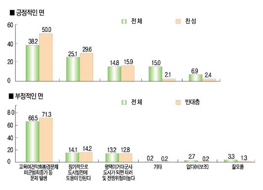 연령이 낮을 수록 부정적 평가가 많았고, 지역적으로는 평택지역(77.3%)과 송탄지역(74.0%)의 부정적 평가가 높았다.
