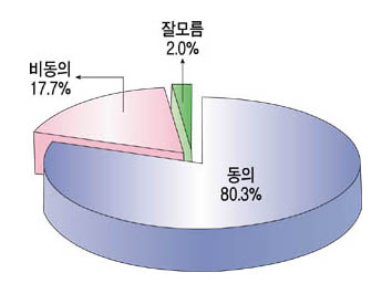 그리고 직업별로는 가정주부(62.0%) 및 불루칼러(59.1%)의 경우 반대가 가장 높았고, 자영업(56.7%)과 학생(47.1%)의 경우 찬성이 높았다.