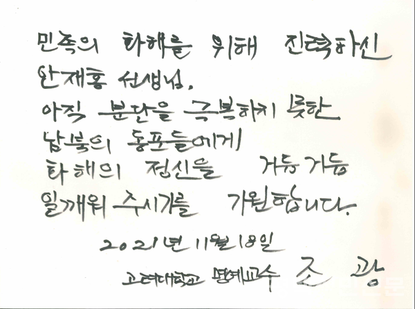 조광 교수는 조선 시대사를 연구한 한국의 대표적인 역사학자로 조선후기사, 한국천주교회사, 실학과 안중근 연구 등에서 방대하고 탁월한 업적을 냈다. 가톨릭대 신학과, 고려대 사학과를 졸업하고 고려대 대학원에서 문학박사 학위을 받았다. 고려대 사학과 교수, 북경대 교환교수, 한국사학사학회장, 조선시대사학회장, 한일역사연구 공동위원회 총간사, 한국사연구회장, 한국고전문화연구원장, 국사편찬위원회 위원장 등을 역임했다. <조선후기 천주교회사 연구>, <조선후기의 역사인식>, <다산정약용의 민권의식 연구> 등 150편이 넘는 저서와 논문을 통해 한국사 연구의 지평을 넓혔다는 평가를 얻고 있다.