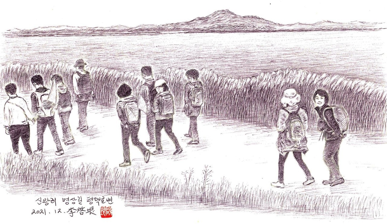 명상길은 신왕리 마을에서 호수변을 한 바퀴 도는 길이다. 섶길을 걷는 이들은 유소년부터 80 노인까지 다양하다. 그들 중엔 세계일주로 걷기코스를 섭렵한 고수들도 있다. 신왕리 수변 억새 꽃길을 걷는 이들의 모습이 정겹다.
