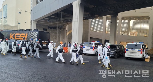 평택 청북읍 물류창고 화재사건을 수사 중인 경기남부경찰청 수사본부가 1월 10일 오전 10시 30분 불이 난 현장에서 정확한 사고 원인을 규명하기 위한 합동감식을 시작했다.