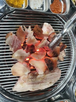 이곳에서 가장 인기 있는 고기메뉴는 생삼겹살과 돼지꼬리, 항정살, 그리고 소갈비살이다. 여기에 양념돼지구이와 대구막창도 손님들이 즐겨 찾는다. 석쇠에 올려 연탄불에 직접 구우니 기름이 쏙 빠진다. 여기에 불맛이 고기에 배어 감칠맛이 더해진다. 기름기가 빠진 고기는 담백하고 깔끔한 맛이 별미다. 특히 이곳에서는 연탄불에 익힌 고기를 강황가루를 묻혀서 먹는다. 강황의 알싸한 맛이 직접 불에 구운 고기와 잘 어울린다. 손님들이 감탄하는 남다른 맛은 보기 드문 연탄 화덕을 이용하는 것도 있지만 최고의 고기재료를 사용하는 것에도 있다.