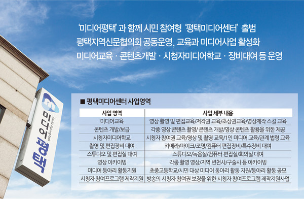 평택시민신문·평택시사신문·평택자치신문 등 평택지역신문협의회 소속 3개사가 공동으로 운영하는 인터넷영상 종합언론 ‘미디어평택’이 5월 2일 평택시 비전동 무지개공원2길 5, 조일빌딩에서 개국함에 따라 공적영역에서 시민과 함께 다양한 미디어사업을 펼치게 될 평택지역 최초의 ‘평택미디어센터’도 동시에 출범해 본격적인 프로그램을 운영할 예정이다.