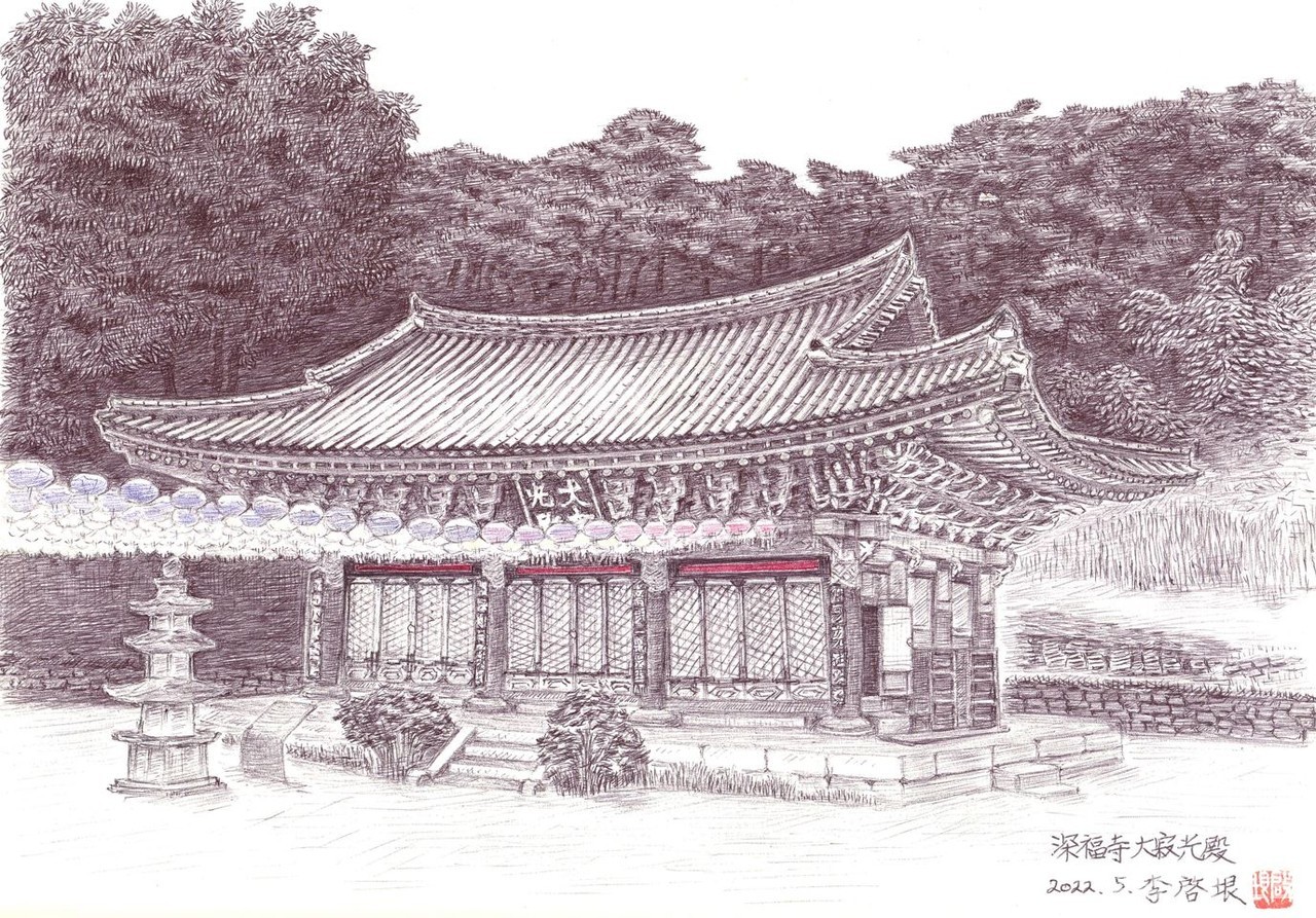 5월 산사의 숲이 푸르르다. 그 숲에서 검은등뻐꾸기의 휘파람 소리가 들린다.