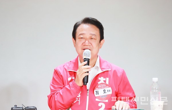 최호 국민의힘 후보 시대는 변하고 있고 평택도 세계 속 모델을 만들어야 한다. 평택은 이제 과거의 평택이 아니다. 시민 모두가 행복해야 하고 시민이 주인인 시대에 맞춰 행정구조도 바뀌고 있다. 2012년 보궐선거로 경기도의회에 입성해 예결위·예결소위에서 활동하며 경기도 전체 예산을 다루고 평택예산과 관련해 많은 공부를 했다. 재선 전반기 예결위 간사, 후반기 자유한국당 대표의원을 맡아 당시 남경필 경기도지사와 함께 연정이라는 사상 초유의 정치실험도 했다. 그 속에서 정치를 어떻게 해야 하고 국민을 어떻게 섬겨야 하는지를 배웠다. 평택시가 31개 시·군에서 어떤 위치에 있는지, 어떤 재원을 가지고 어떤 성과를 내는지 누구보다 많이 배웠다. 오늘 이 자리는 단순한 정쟁이 아니라 평택시민의 미래를 어떻게 결정할 건지를 생각하는 소중한 자리가 될 것으로 기대한다.