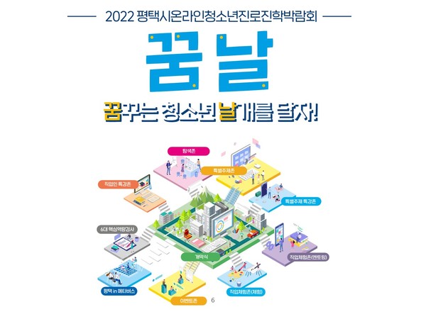평택시와 경기도평택교육지원청은 13일 개막식을 시작으로 2022 평택시 온라인 청소년 진로진학박람회 ‘꿈날’을 6월 18일(토)까지 개최한다.