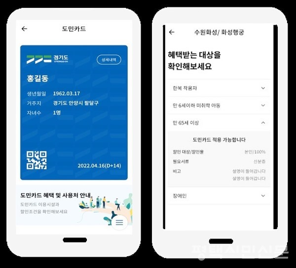 도민카드는 마이데이터를 활용한 맞춤형 정보서비스 ‘경기똑D’ 앱에서 사용 가능하다. 앱 설치 후 본인인증을 받고 카드 발급 동의 절차를 거치면 발급 후 바로 사용할 수 있다. 적용되는 공공시설에서 도민카드를 제시하면 거주지, 나이, 자녀수, 장애인이나 유공자 여부를 확인하고 해당하는 할인을 제공한다.