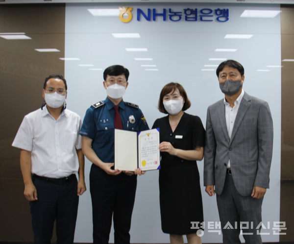 농협은행 평택시지부가 8월 4일 은행원의 긴급신고시스템 작동으로 보이스피싱 피해를 막는 데 중요한 역할을 했다.