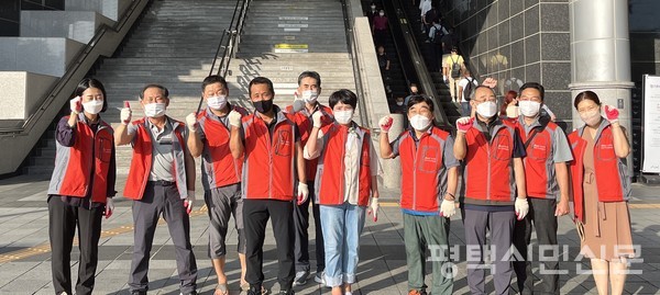 이날 활동에는 주민자치위원 20여 명이 참가해 시민 통행량이 많은 서부역 계단 손잡이와 에스켈레이터 등을 철저히 소독하고 평택초교~서부역 도로변에 무단투기된 각종 생활쓰레기를 깨끗이 치웠다.
