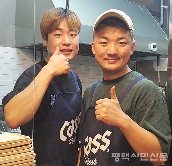 저녁 7시쯤 도착했을 때 이미 테이블마다 손님들이 가득 차 있었다. 즐겁게 이야기를 나누며 맛있게 음식을 먹고 있는 모습이 활기차다. 이야기꽃이 만발한 테이블을 다니면서 닭을 구워주고 친절하게 손님을 응대하는 젊은 사장이 있다. 바로 계판을 운영하고 있는 최수호(28) 사장이다. 계판은 최수호 사장과 친구 황선용 사장이 같이 운영하고 있다.