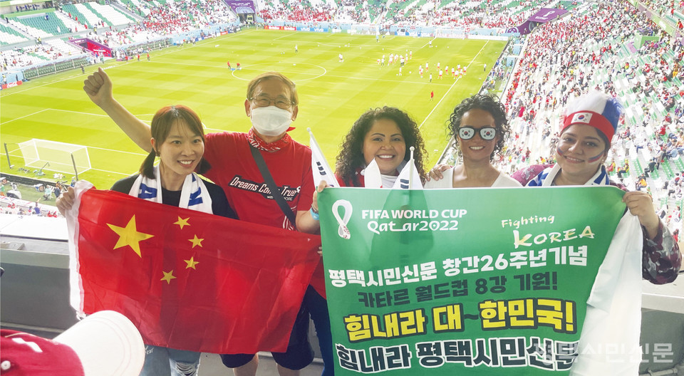 본지 이사 최인규 전 호서대 겸임교수가 평택시민신문 창간 26주년을 맞아 8강을 기원하면서 뜨거운 열기의 카타르 월드컵 현장 사진을 보내왔습니다.