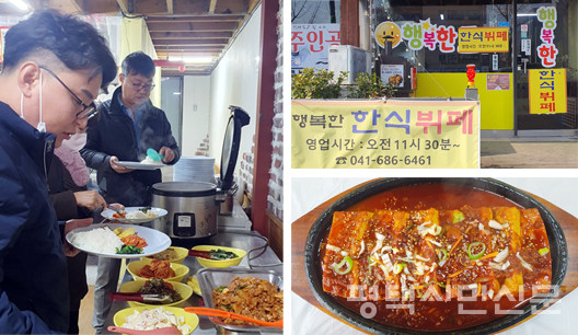 이런 숨겨진 노력들이 모여 행복한 밥상이 맛집으로 자리잡는데 도움이 되고 있다. 점심에는 이렇게 한식부페로 운영하지만 이곳의 여러 가지 일품요리도 인기가 많다. 주인장의 남다른 솜씨가 느껴지는 닭볶음탕과 김치짜글이, 동태탕, 두부조림 등은 저녁에 식사를 즐기는 사람들의 만족도를 높여준다.