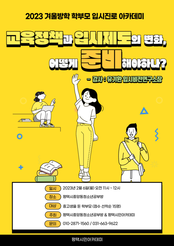 아카데미에 참여한 김아무개씨는 “학부모로서 입시 제도의 변화와 대응 방법에 대해 알고 싶어 참여했다. 입시 전문가로부터 핵심 내용을 들을 수 있어 매우 유익했다”고 소감을 밝혔다.