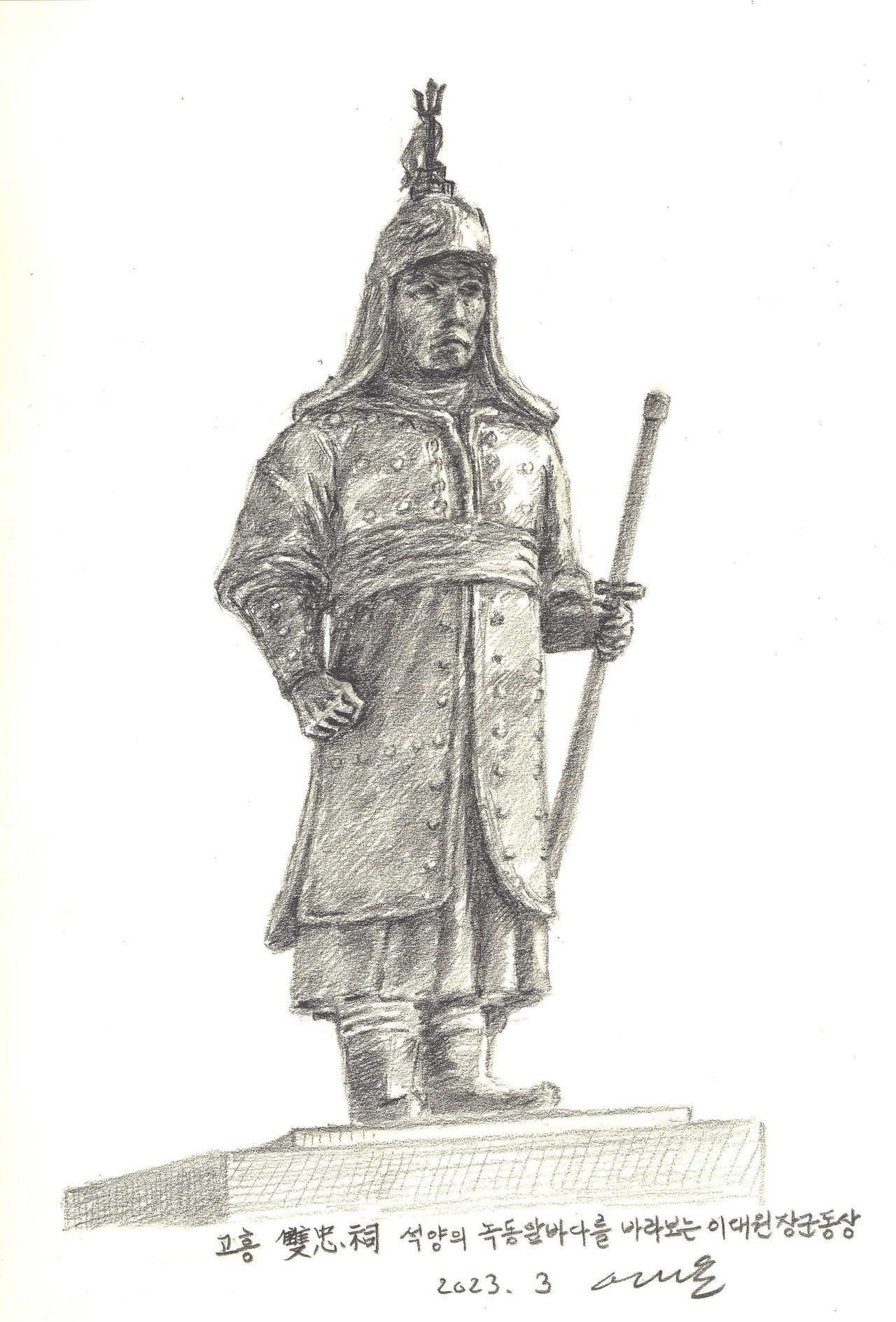 ‘평택섶길’은 평택의 작은 길들이다. 16개 코스 오백리에 이르는 길은 물안개 피어오르는 호수 곁에, 호젓한 숲에, 고즈넉한 시골 마을에, 유서 깊은 시내 골목과 재래시장에 이야기와 함께 짜여 있다. 섶길 여정에는 문화유산과 기념물, 역사 인물에 대한 테마들이 있다. 공직 은퇴 후 취미생활을 찾던 중 섶길과 인연을 맺게 되었다. 필자는 평택에서 나고 자랐지만 섶길을 처음 걷는 날 곳곳에 숨어있는 경관이 놀라웠다. 그림 그리기에 약간의 소질이 있는 필자는 평택섶길 풍경을 펜화로 그려 간단한 글과 함께 평택시민신문에 한달에 한번 연재한다. 이 글을 통해 많은 분들이 섶길을 함께 걸으며 우리 고장을 더 알게 됨은 물론 건강과 즐거움을 얻는 기회가 되길 소망한다. 섶길 4코스 원효길을 지나다보면 이대원 장군의 신위를 모신 사당이 보인다. 이번호에서는 3월 28일 436주기 추모제향일을 맞는 포승읍 희곡리 낳은 충렬공 이대원 장군을 기억하고자 한다.