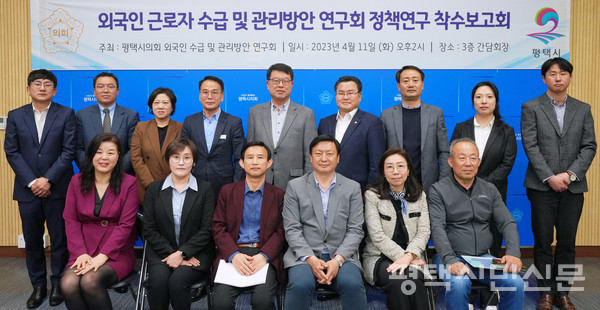 평택시의회 외국인 근로자 수급 및 관리방안 연구회는 4월 11일 시의회 간담회장에서 정책연구 착수보고회를 열었다.