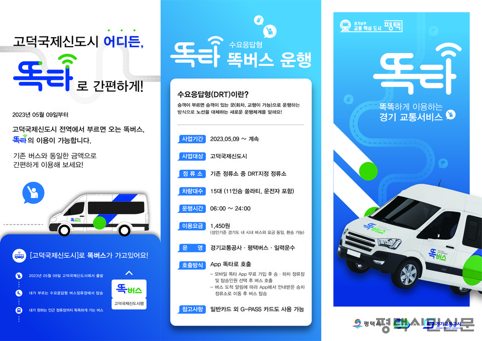 원하는 시간과 원하는 장소에서 원하는 목적지로 이동할 수 있는 신개념 교통수단 ‘똑버스’가 평택 고덕신도시 전역에서 운행을 시작한다.