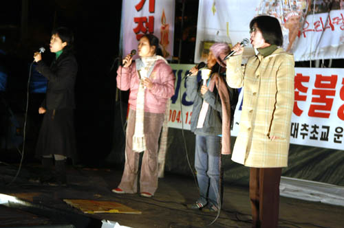지난 9일 팽성읍 대추초등학교 운동장에서 가진 ‘우리땅 지키기 촛불행사 100일기념 문화제’는 미군기지확장반대 운동을 벌이고 있는 각계각층의 시민단체들과 팽성읍 대추리 주민 등 500여명이 모인 가운데 문화행사로 진행됐다.