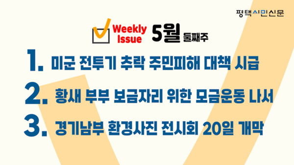 주요기사 예산 고갈로 산모신생아 건강관리 차질 우려 쿠팡 택배노동자 사망…평택지청에 특별감독 촉구 평택지역 도의원들 도의회 행감에서 활약 13년간 5만7400장, 한광중이 나른 ‘따뜻한 겨울’ 고덕10유치원·고덕1중학교 신설 평택항만공사, 95kW 규모 ‘햇빛발전소’ 조성