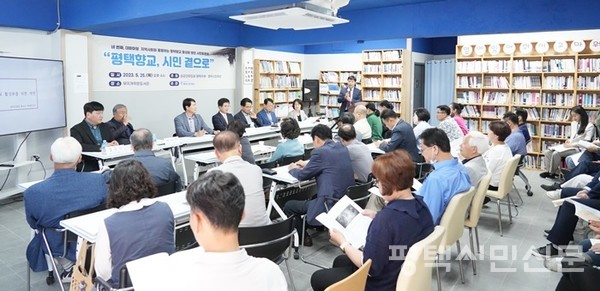 지난해 7월부터 지도체계 구성 문제로 갈등을 겪었던 팽성읍 소재 평택향교(전교 방효웅) 활성화를 위한 토론회가 5월 25일 ‘평택향교, 시민 곁으로’라는 주제로 비전동 소재 무지개작은도서관에서 개최됐다.