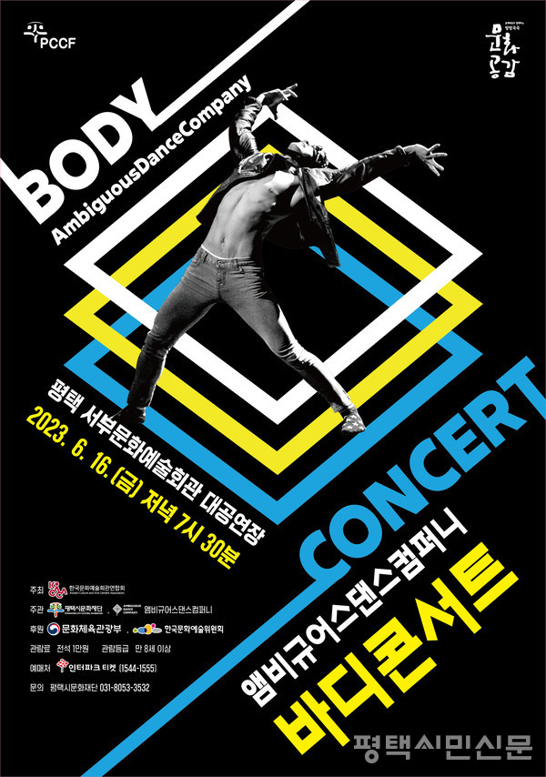 평택시문화재단은 6월 16일 평택서부문화예술회관 대공연장에서 앰비규어스 댄스컴퍼니의 대표작 ‘바디 콘서트’를 선보인다. 이번 공연은 한국문화예술회관연합회의 방방곡곡 문화공감 사업으로 열린다.