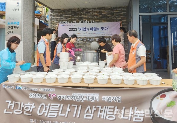 주민봉사단은 경기도와 평택시 자원봉사센터의 지원으로 서정동, 지산동, 신장1동, 신장2동에 거주하는 노인 100명의 안부를 살피며 정성스럽게 조리한 삼계탕을 전달했다.