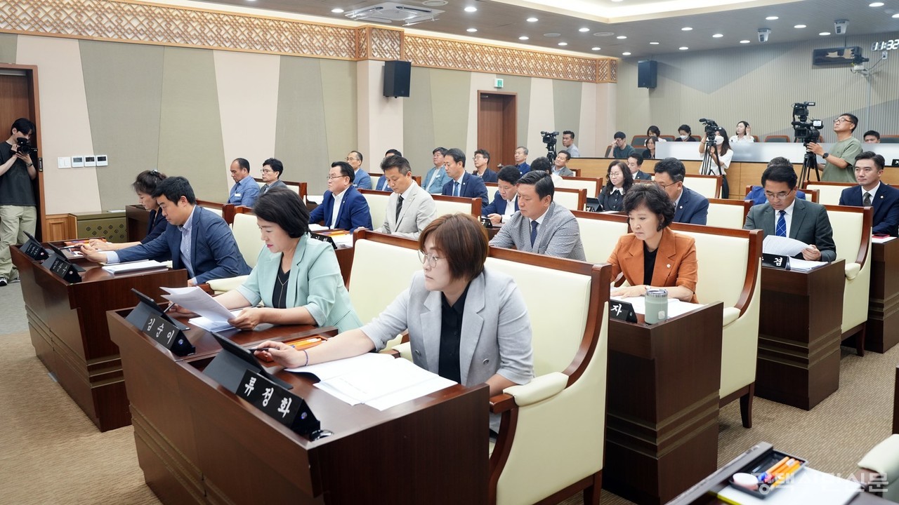 이날 본회의에서는 민세 안재홍 선생 서훈 승급 촉구 건의안, 의원 발의 조례안 9건, 집행부 제출 조례안 11건, 동의안 3건, 기타 2건 등 26건(원안가결 22, 수정가결 4)의 안건이 심의‧의결됐다.