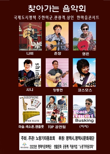 노랑기타동호회주최 찾아가는 음악회가 7월 28일 오후7시 팽성읍 안정리예술인광장에서 개최된다.